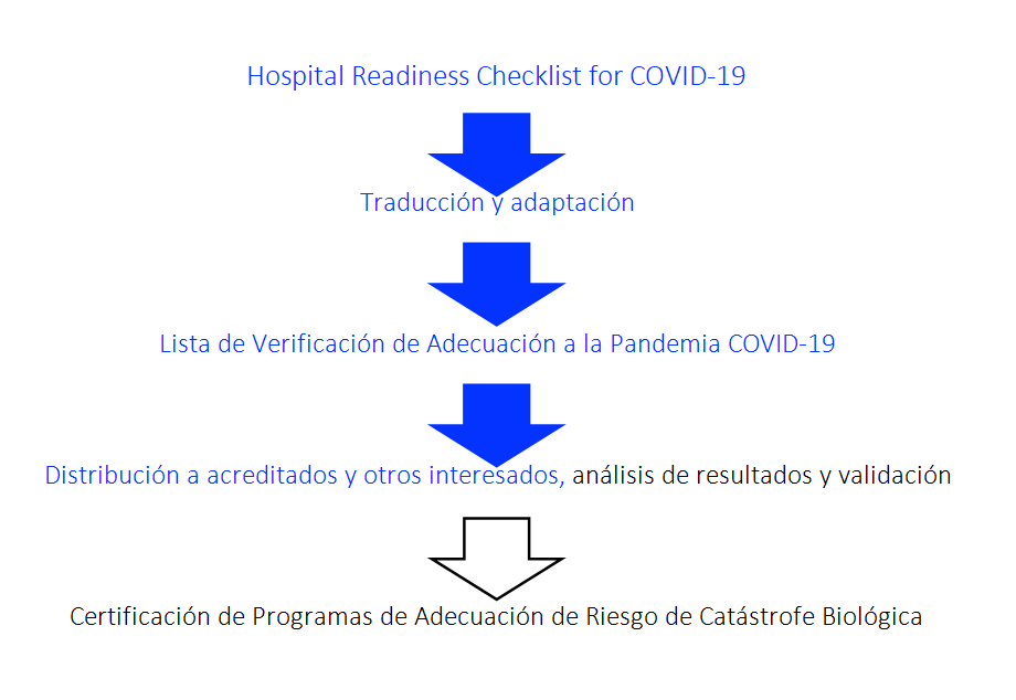 A continuación se describe el proceso llevado a cabo para desarrollar e implementar dicha herramienta. En febrero de 2020, la Oficina Regional Europea de la OMS publicó2 la Hospital Readiness Checklist for COVID-19, que permite a los establecimientos de salud estimar su grado de preparación para enfrentar la pandemia. El ITAES la consideró una herramienta de relevancia, por lo que fue traducida al español y luego adaptada a nuestro medio. A partir del 29 de agosto de 2020, la Lista de verificación para la adecuación de establecimientos de salud en contexto de pandemia fue remitida a todos los enrolados en los programas de acreditación del ITAES. Actualmente, también se envía a todas las personas y organizaciones que tengan interés: simplemente deben solicitarla a través del sitio web del Instituto